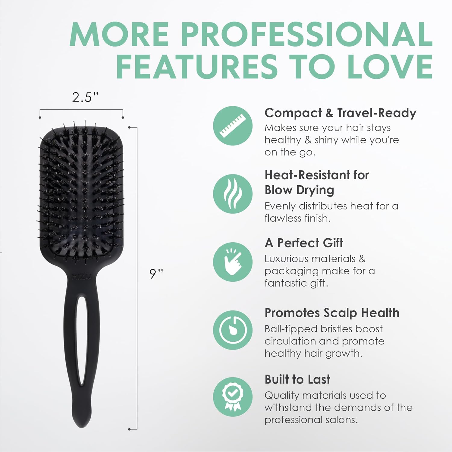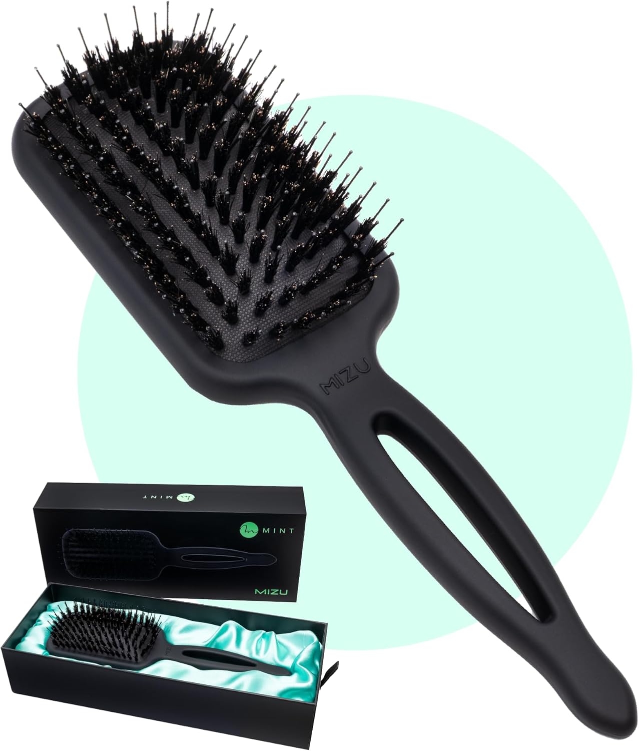 The MINT Mizu, is the luxurious, compact sibling to the Kaze brush. Designed with the same high-quality bristle pattern, the Mizu hair brush is your perfect companion for every hair care need. Elevate your hair care routine to a new level of excellence.